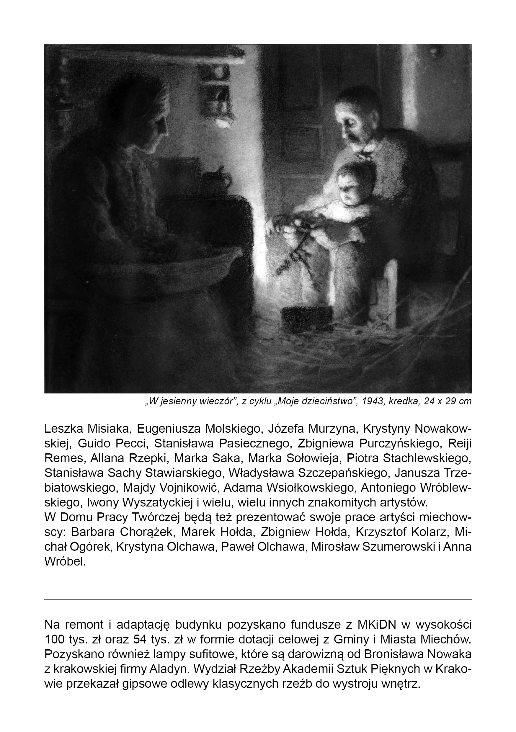 Galeria Twórczości i Pracownia Odtworzona Stefana Żechowskiego działa od 2009 roku. Jej misją jest popularyzacja twórczości oraz gromadzenie i udostępnianie dzieł artysty a także wiadomości i memorabiliów związanych z jego osobą. Działalność tę realizuje się również poprzez popularyzację twórczości członków Szczepu Rogate Serce, jako grupy artystycznej, do której przynależał Żechowski. Galeria Żechowskiego stała się też istotnym miejscem życia kulturalnego Miechowa, pozwalając na poszerzenie oferty kulturalno-oświatowej miechowskiego BWA. W dążeniu do realizacji tego założenia konieczne było powiększenie zajmowanej dotąd siedziby i adaptacja nowych pomieszczeń. Możliwość taką zyskano dzięki wsparciu finansowemu przyznanemu w ramach projektu MKiDN. W czerwcu 2011 r. w Galerii Twórczości Stefana Żechowskiego rozpoczął się remont, dofinansowany w ramach projektu Infrastruktura Kultury 2010. Inwestycja wiązała się z powiększeniem zajmowanego przez BWA metrażu, gdzie zaprojektowano powstanie Galerii Twórczości S. Żechowskiego oraz Salonu Sztuki Współczesnej.