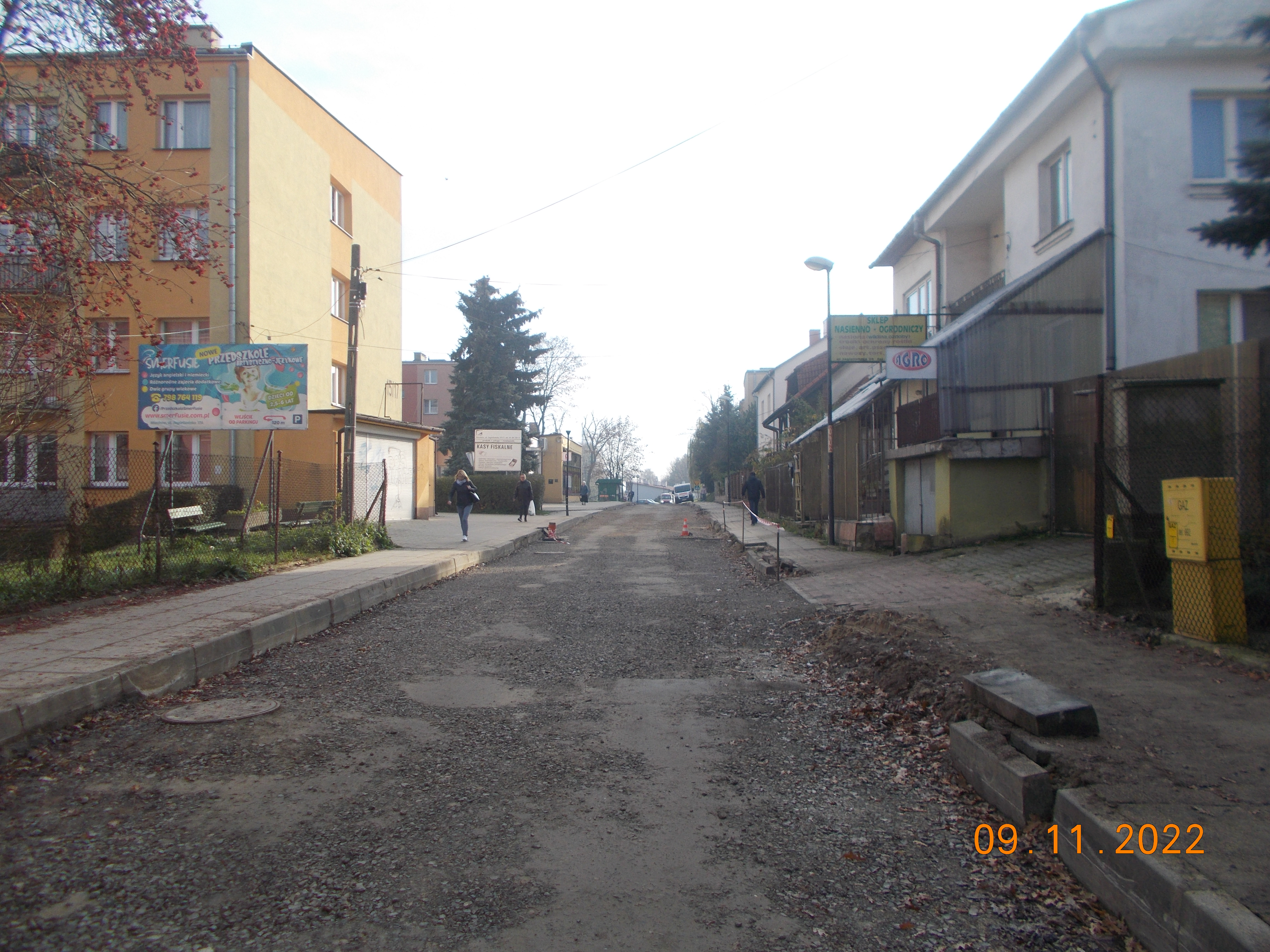 Wartość odebranych robót częściowych wyniosła 418 786,10 zł brutto.  Wykonano korytowanie, częściową podbudowę, stabilizację oraz remont kanalizacji deszczowej.  Kolejny odbiór zaplanowany jest w styczniu 2023 r.