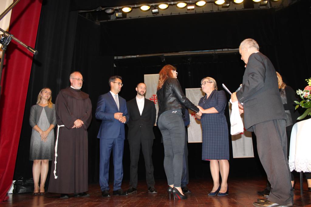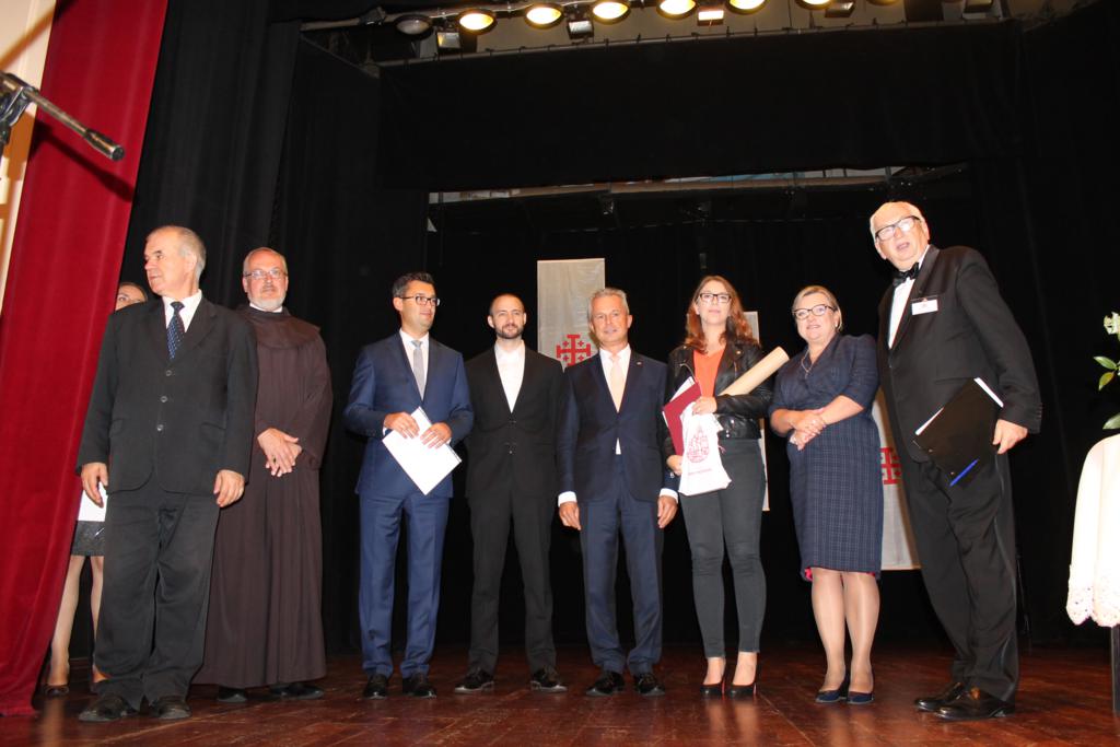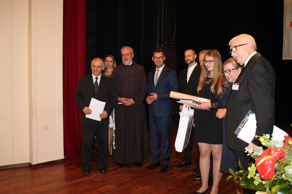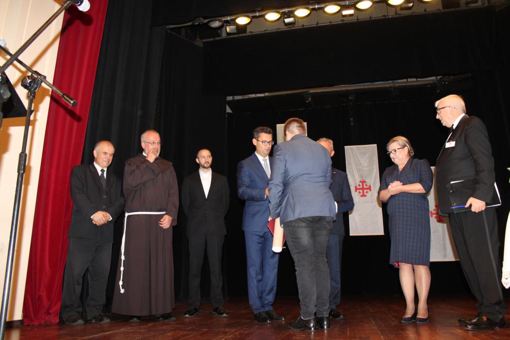 Po zakończonych prelekcjach, w sali kinowej uroczyście wręczono nagrody laureatom konkursu wiedzy nt. „Związków Miechowa z Jerozolimą”, który organizowany był na szczeblu gminnym i powiatowym. Uczniowie biorący udział w konkursie otrzymali pamiątkowe dyplomy oraz atrakcyjne nagrody rzeczowe.
