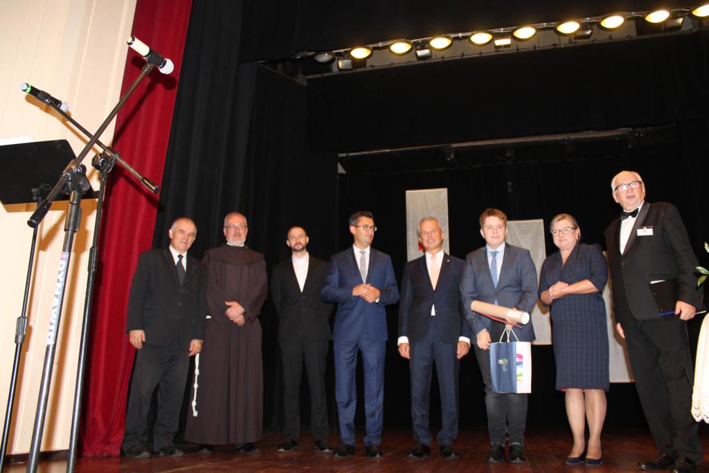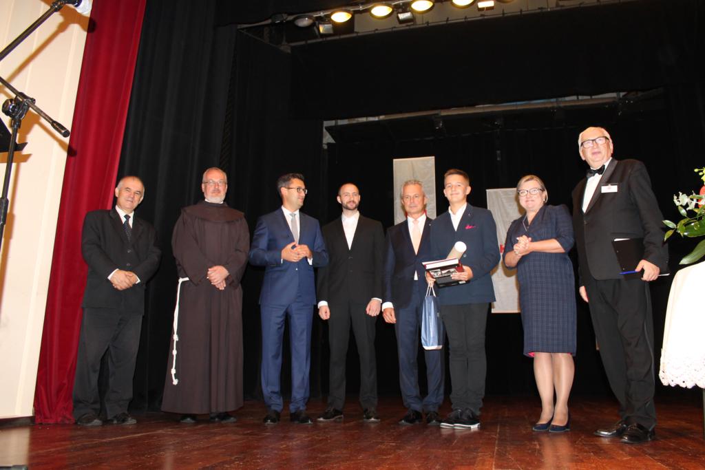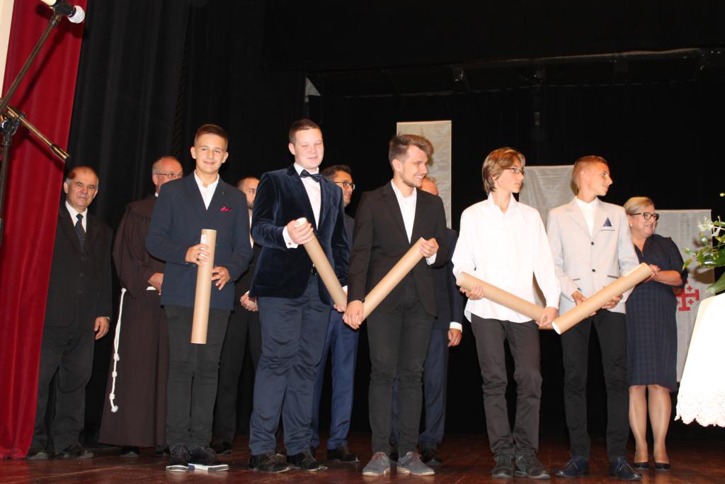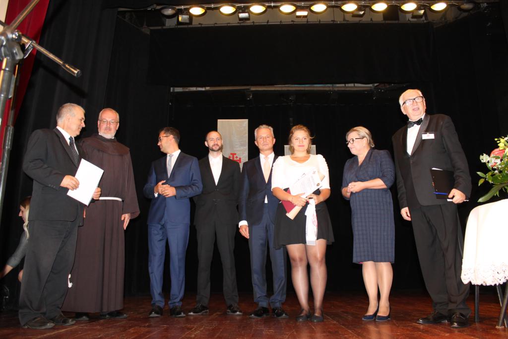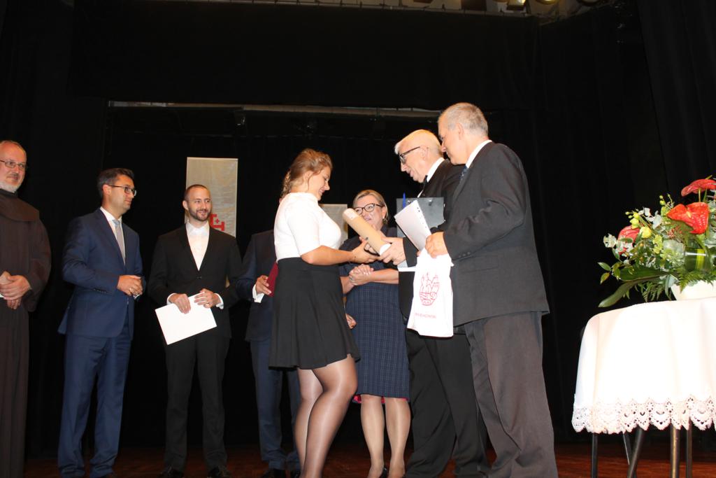 Po zakończonych prelekcjach, w sali kinowej uroczyście wręczono nagrody laureatom konkursu wiedzy nt. „Związków Miechowa z Jerozolimą”, który organizowany był na szczeblu gminnym i powiatowym. Uczniowie biorący udział w konkursie otrzymali pamiątkowe dyplomy oraz atrakcyjne nagrody rzeczowe.